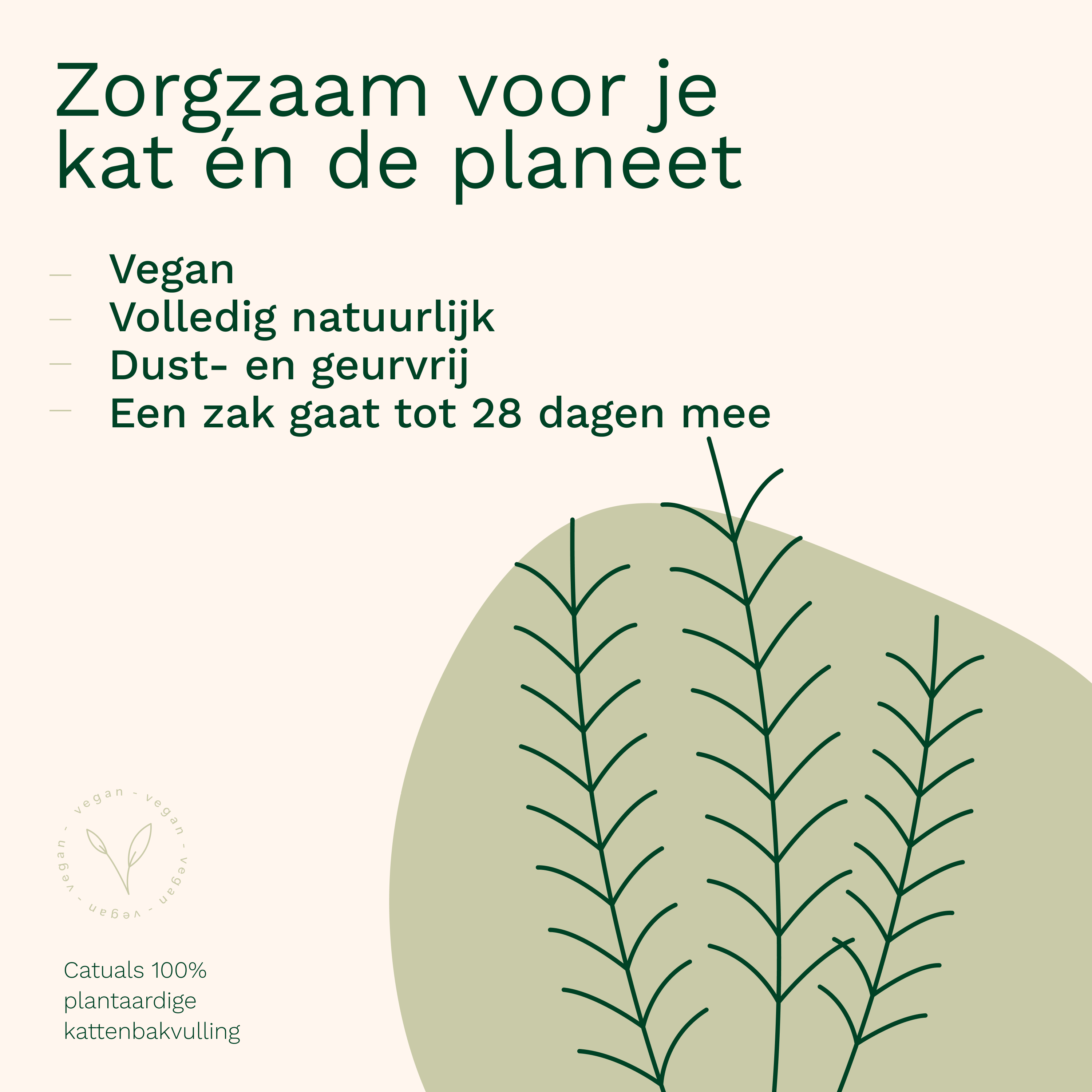 De Catuals Klontvormende Kattenbakvulling is gemaakt van duurzame plantaardige ingrediënten en ontwikkeld met zowel jouw kat als het milieu in gedachten. Zacht voor de pootjes, vriendelijk voor de natuur en verrassend effectief.